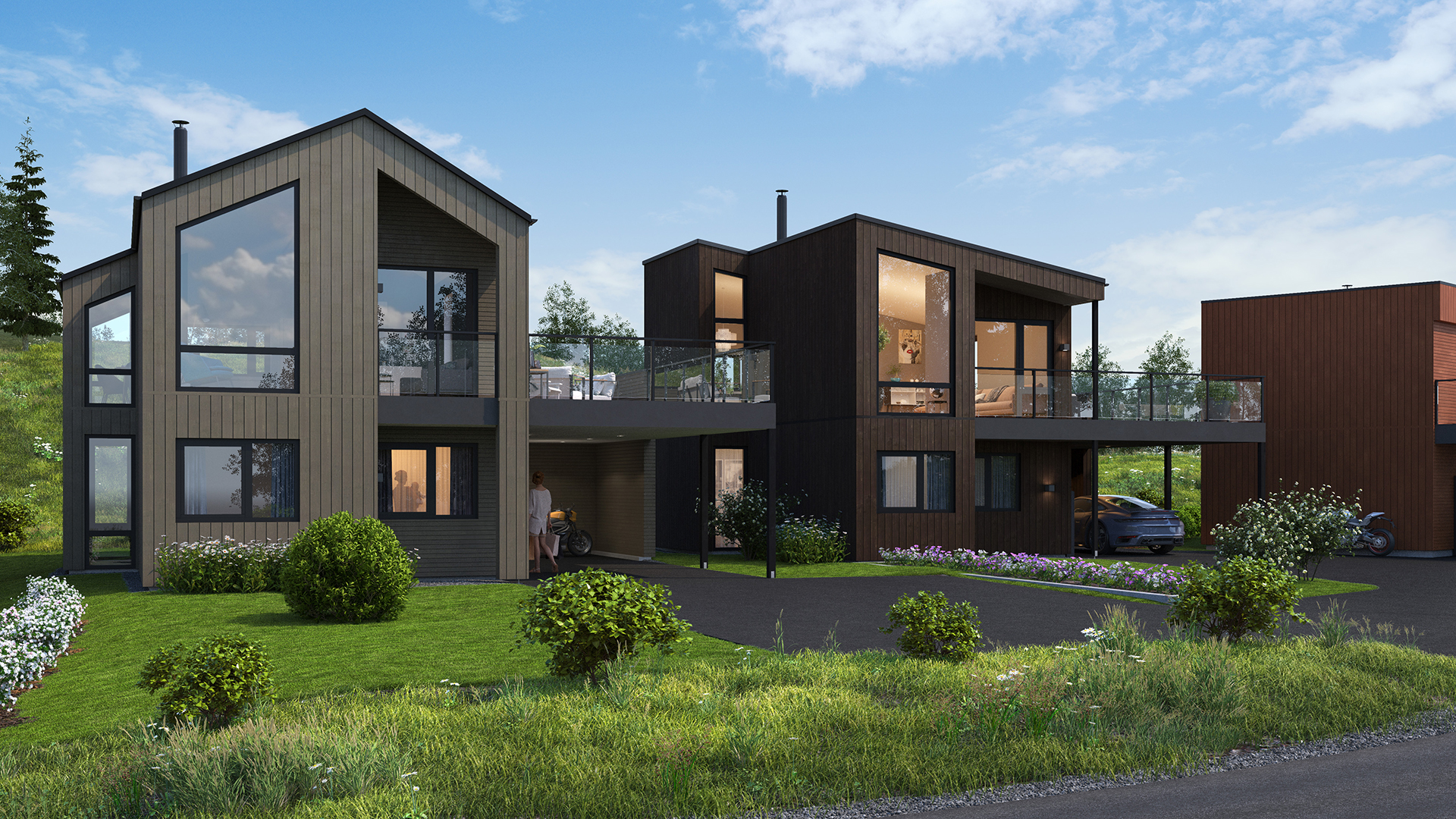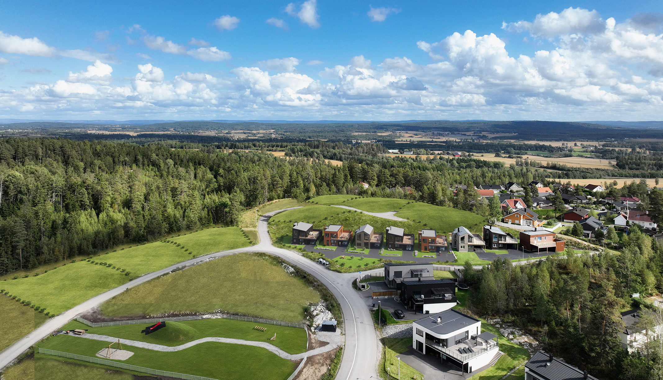 Tomter og eneboliger med flott beliggenhet øverst i feltet.