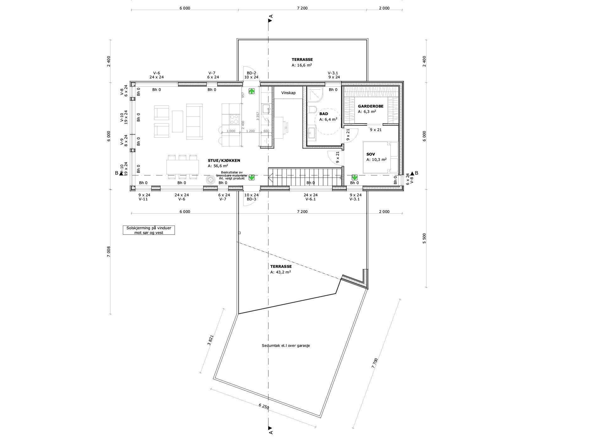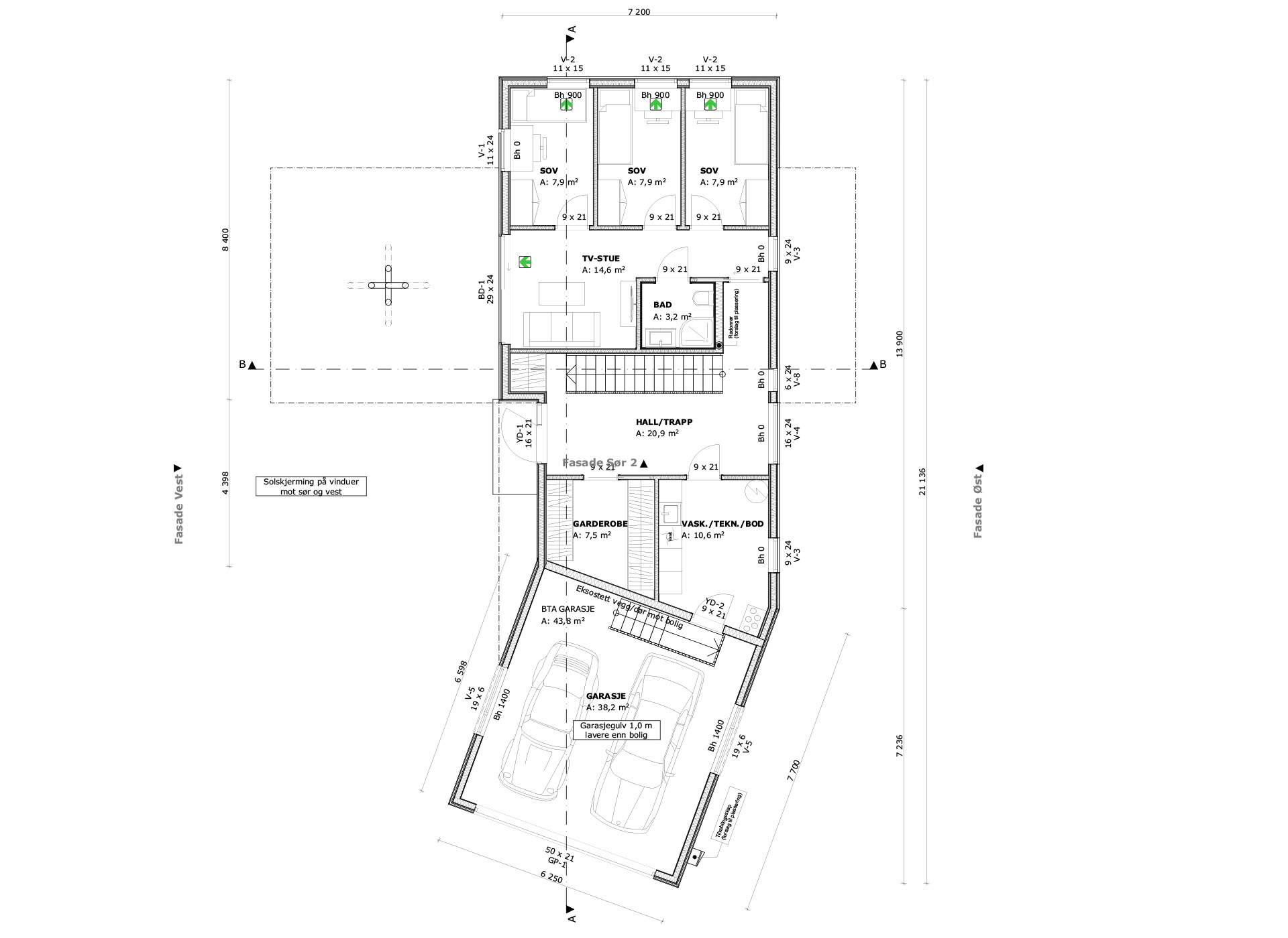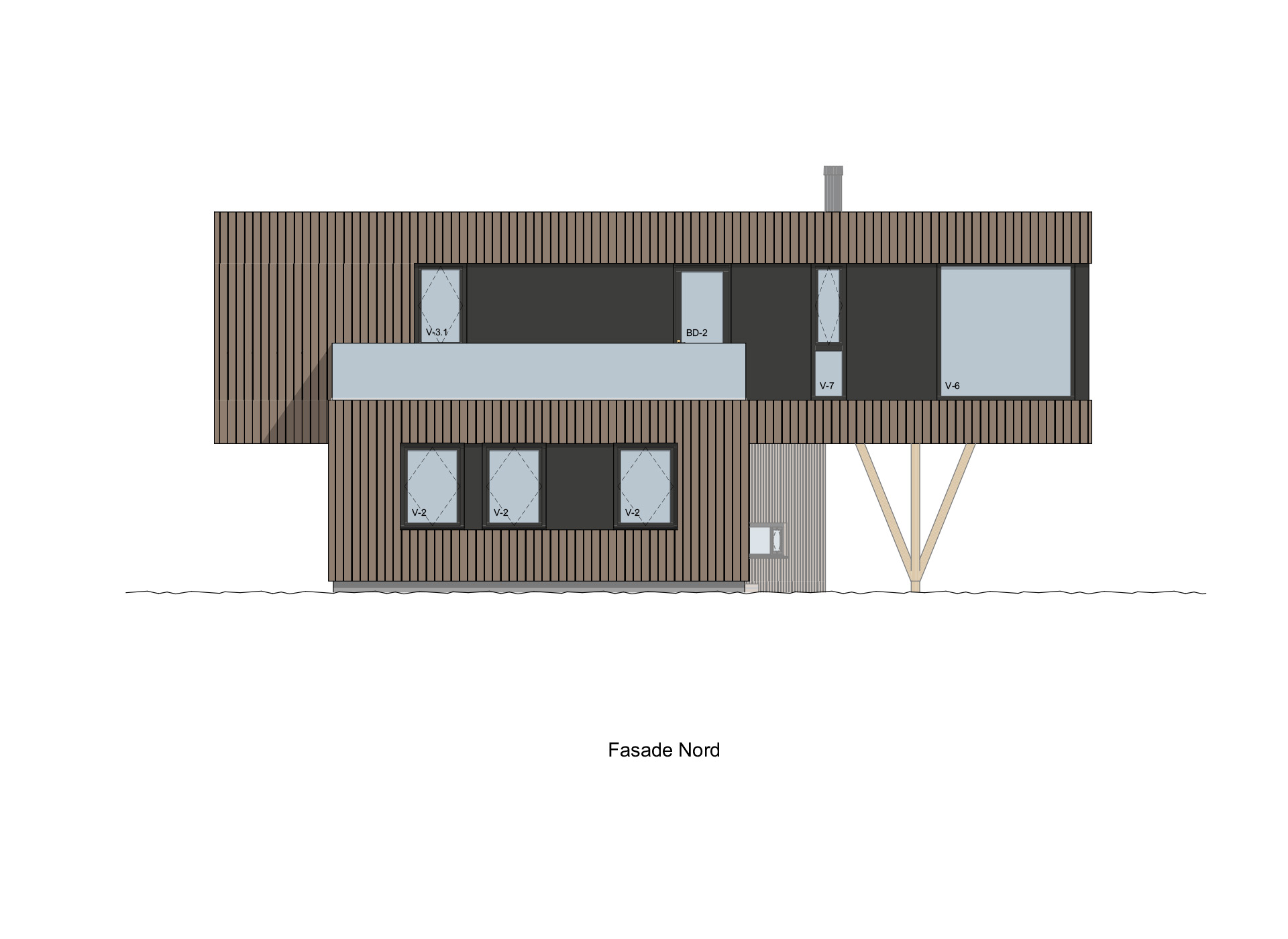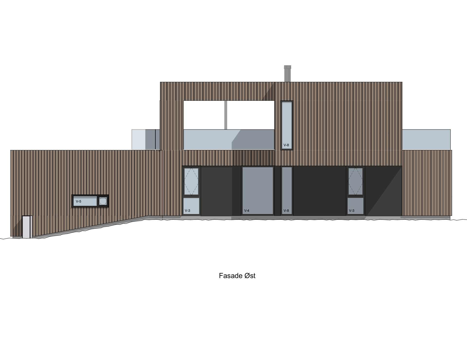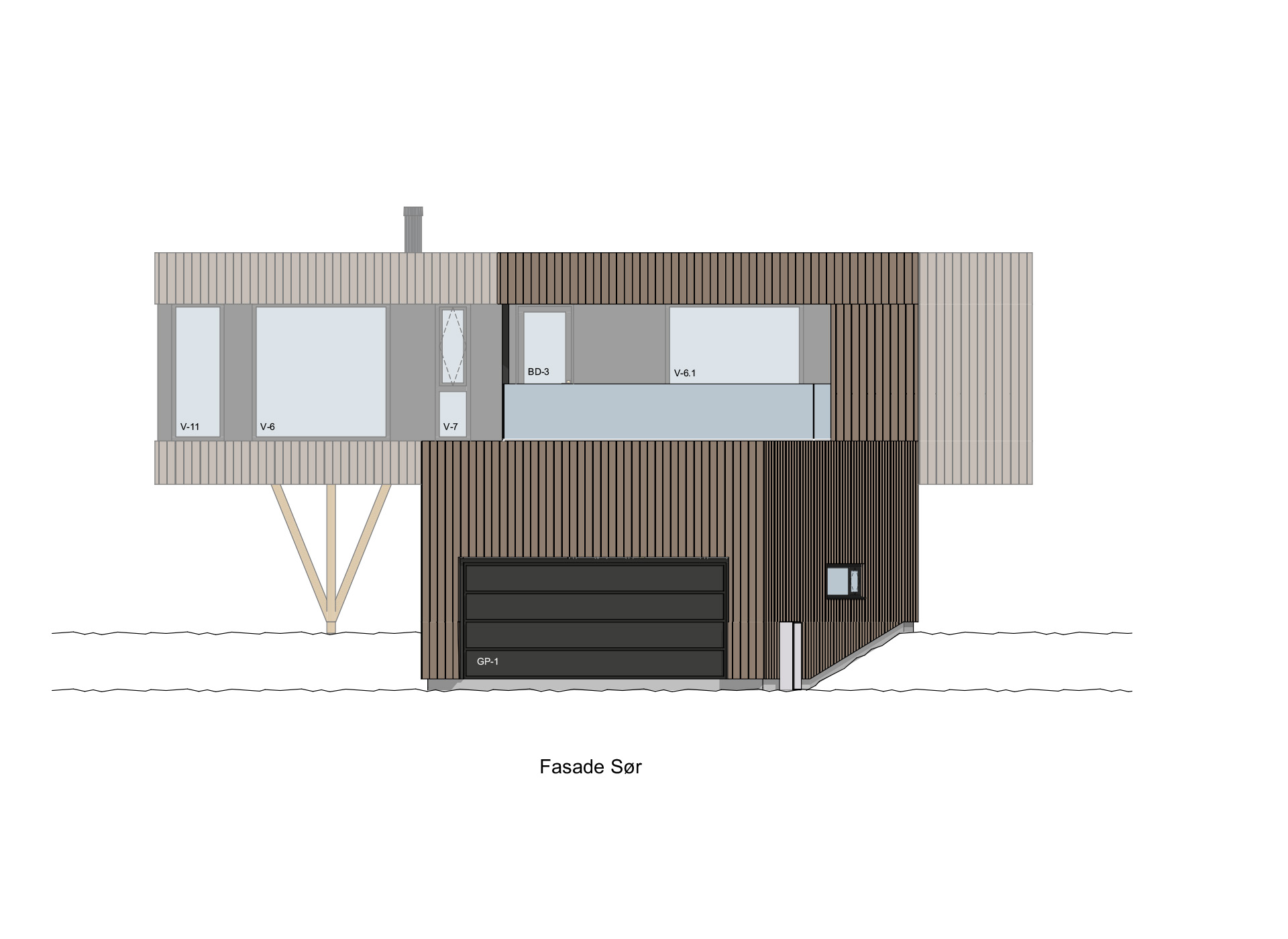 Det er ingen byggeklausul for Norgeshus men vi kan bistå med hjelp fra Norgeshus sine dyktige arkitekter. Det er laget en skisse som viser mulighet tomten har for en spesiell bolig, denne boligen er ikke kostnadsberegnet. Fasadetegninger og plantegning av skissert bolig